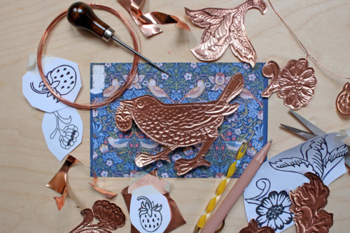 The workshop will begin with Christine giving a simple tutorial of the basic techniques and how to prepare your copper, from here, you will choose your motifs and work independently using different embossing tools and techniques to create your ornaments. Christine will be on hand throughout the workshop to give individual guidance and answer any questions. To finish she will help you create a simple garland or ribboned ornaments. All materials will be provided. No experience necessary.
